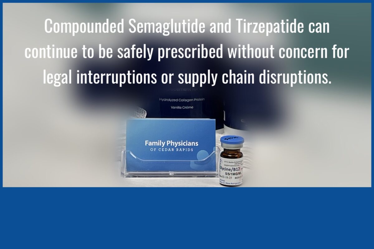 This is important because it means compounded semaglutide and tirzepatide can continue to be safely prescribed without concern for legal interruptions or supply chain disruptions. In other words, our patients can continue receiving these effective treatments consistently, ensuring ongoing progress toward their health and weight management goals.