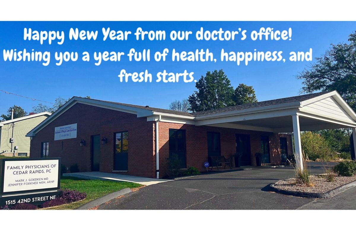 As we welcome a brand-new year, we want to thank you for trusting us with your health. May this year bring you happiness, good health, and peace of mind. We look forward to continuing to care for you and your family in the year ahead. Cheers to a healthy New Year!