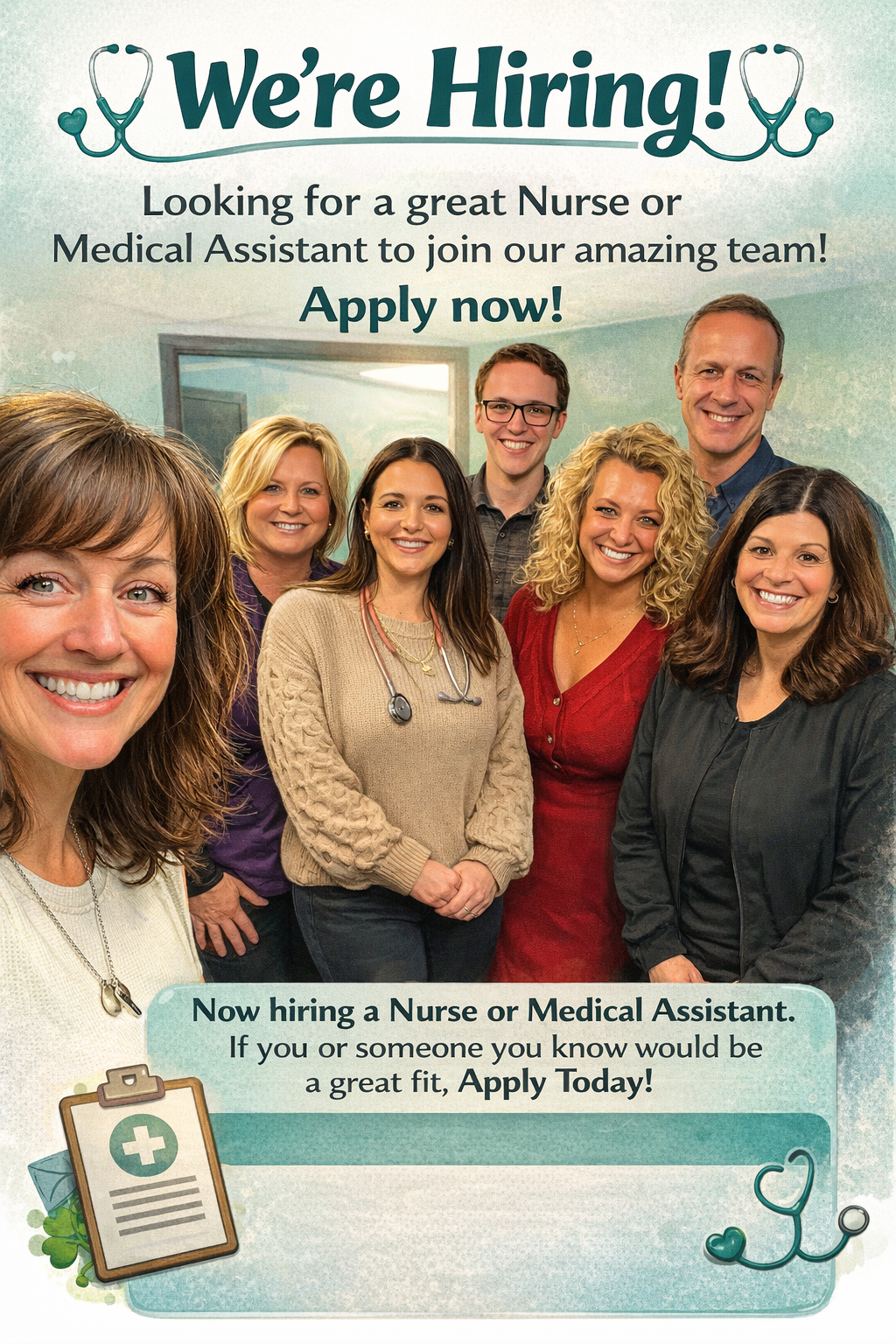 Weāre Growing, And Looking for a Nurse or Medical Assistant to Join Our Team! Our doctorās office is excited to welcome a compassionate, dedicated Nurse or Medical Assistant to our close-knit team. If youāre someone who brings skill, heart, and a genuine passion for patient care, weād love to meet you. This role includes both clinical support and helping in the front office, perfect for someone who enjoys variety, teamwork, and patient care. If you or someone you know is interested in joining our office, please reach out or send a resume our way.